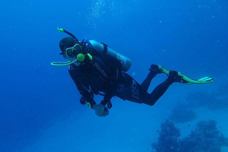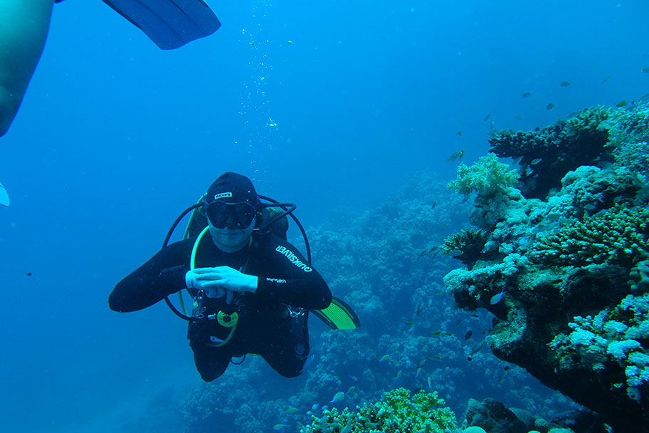 We will organize the transfer from your hotel early in the morning in a Limousine or Minibus (both with air condition) and drive to a beach where you can go snorkeling or you start with a dive and the chance to be alone in this place is really high. To be the first human this day underwater is a great feeling. Enjoy!